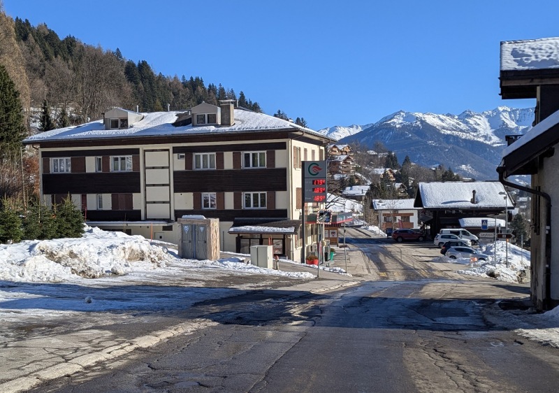 Ovronnaz has a pleasant village. Quiet and not in any hurry. It is in no way a true Swiss Alps beauty, and actually feels a little tired, but its sunny disposition is nice on a blue-sky day. Quite spread out along the mountainside, the local bus certainly gets a workout to get around. The ski area is just far enough from the village to warrant the bus over walking.