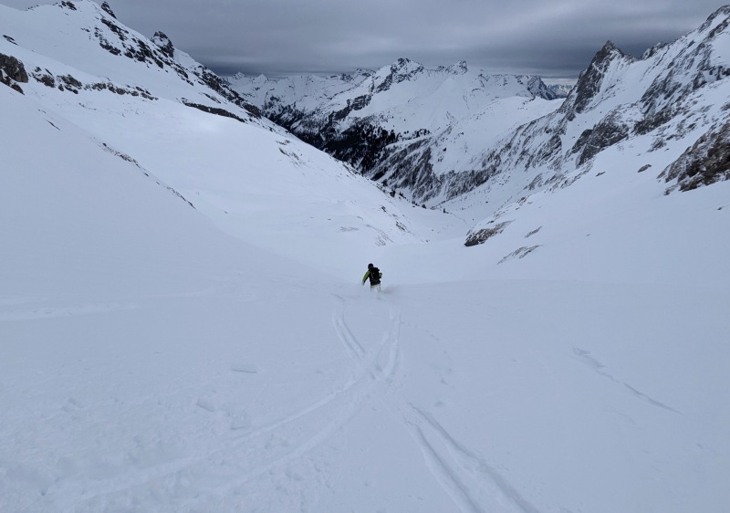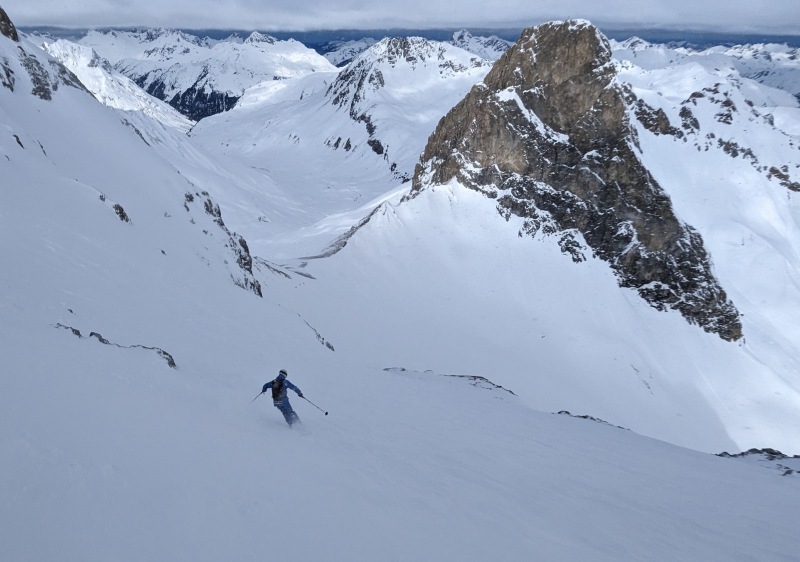 Anyway, to do this fabulous ascent and then ski the famous Valluga North route with one of our partners was a real treat. Stefan from Guide & Ride picked a fabulous route for a day’s outing from Lech. After several weeks of warm temperatures, to ski untracked fresh snow was a way better outcome than anyone could have anticipated. Several technical sections interspersed with long, mellow powder lines and a 600m vertical skin in between was a fantastic exposure to what the backcountry of Ski Arlberg is all about.